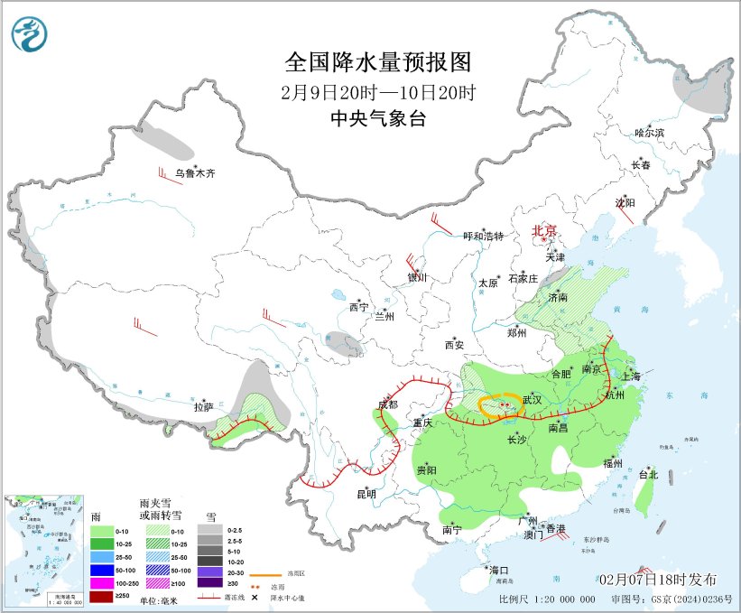 未来三天,西南地区东部、江汉、江南、江淮等地有小到中雨,其中,湖北、湖南北部、河南南部、江苏北部、山东等地将出现雨转雪或雨夹雪,贵州、湖南北部、湖北等地局地有冻雨;新疆北疆西部、西藏东部、川西高原东部、甘肃南部、陕西南部、山西南部等地部分地区有小雪或雨夹雪,局地中到大雪。
